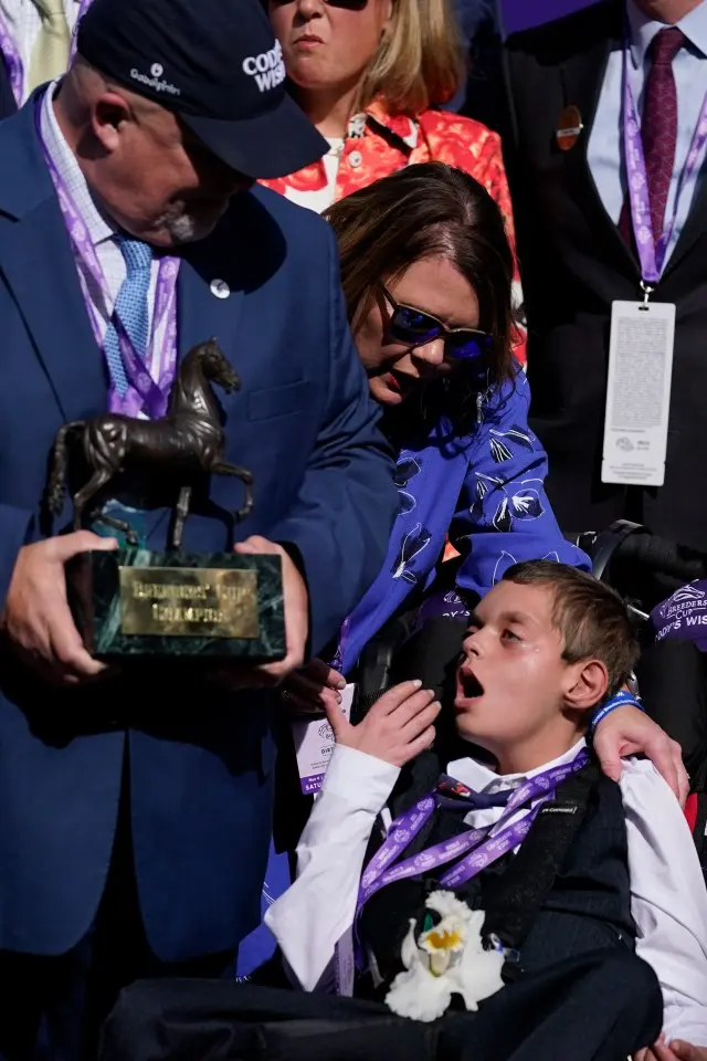 Cody’s story had begun years earlier in a way that seemed almost destined. The Make-A-Wish meeting in 2018 was meant to be a one-time experience, but the immediate connection between the boy and the weanling foal changed everything. Cody’s Wish went on to become a Grade 1 winner, his racing career marked by come-from-behind triumphs that mirrored the challenges Cody faced daily. The horse’s 2022 and 2023 Breeders’ Cup victories, both in the Dirt Mile, became defining moments not just for the connections but for the entire sport.