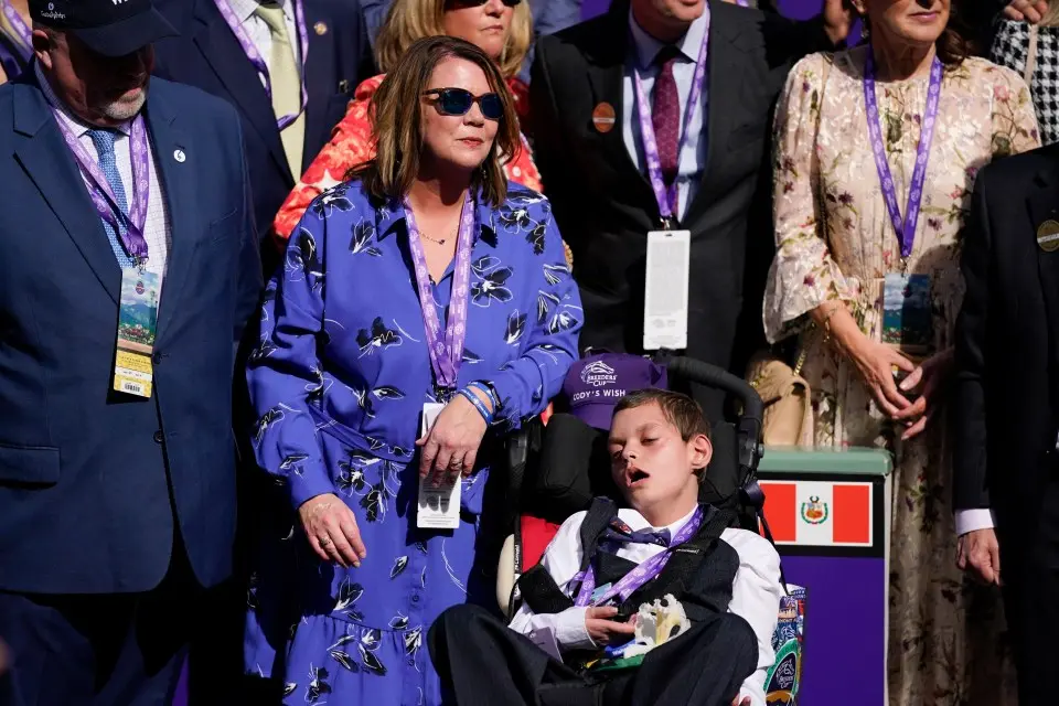Cody had attended multiple races throughout the horse’s career, his presence a source of inspiration for trainers, jockeys, owners, and fans alike. Trained by Hall of Famer Bill Mott and owned by Godolphin, Cody’s Wish had already captured the Secretariat Vox Populi Award for two consecutive years, voted by fans as the most popular horse in racing. His story transcended the sport, highlighting themes of friendship, perseverance, and the human-animal bond that defies physical limitations.